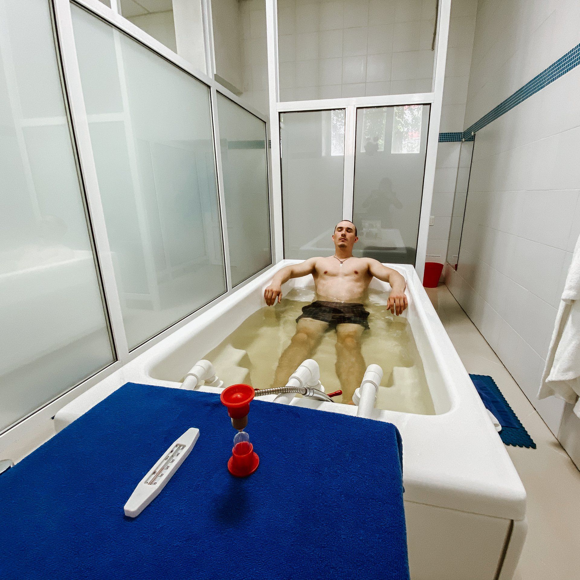 • Сеанс водных процедур или гидротерапии в соответствии с показаниями: подводный массаж, гидроэнергетическое детоксвосстановление или обёртывание растительными травами.
